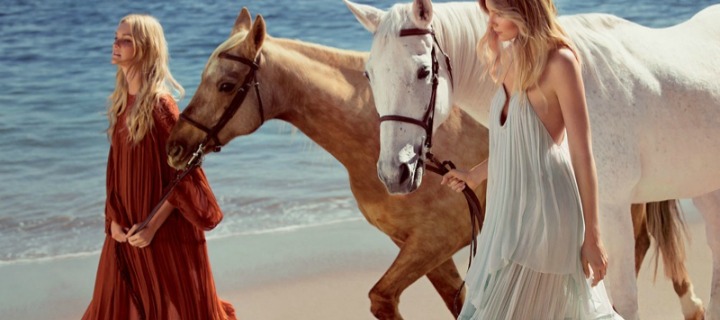 W to zimowe popołudnie my już myślami wędrujemy w kierunku budzącej się do życia wiosny i letniej energii. Na rozgrzewkę prezentujemy Wam nową kampanię reklamową Chloé Spring & Summer 2015, w której zaprezentowano gwiazdy top modelingu o nietypowej urodzie : Caroline Trentini oraz Eniko Mihalik. Sfotografowane zostały przez Inez & Vinoodh, na malowniczej plaży oraz w otoczeniu dzikiej natury w towarzystwie koni, którego to symbolizują siłę oraz wolność, czyli doskonale wpisują się w tematykę całej prezentacji.