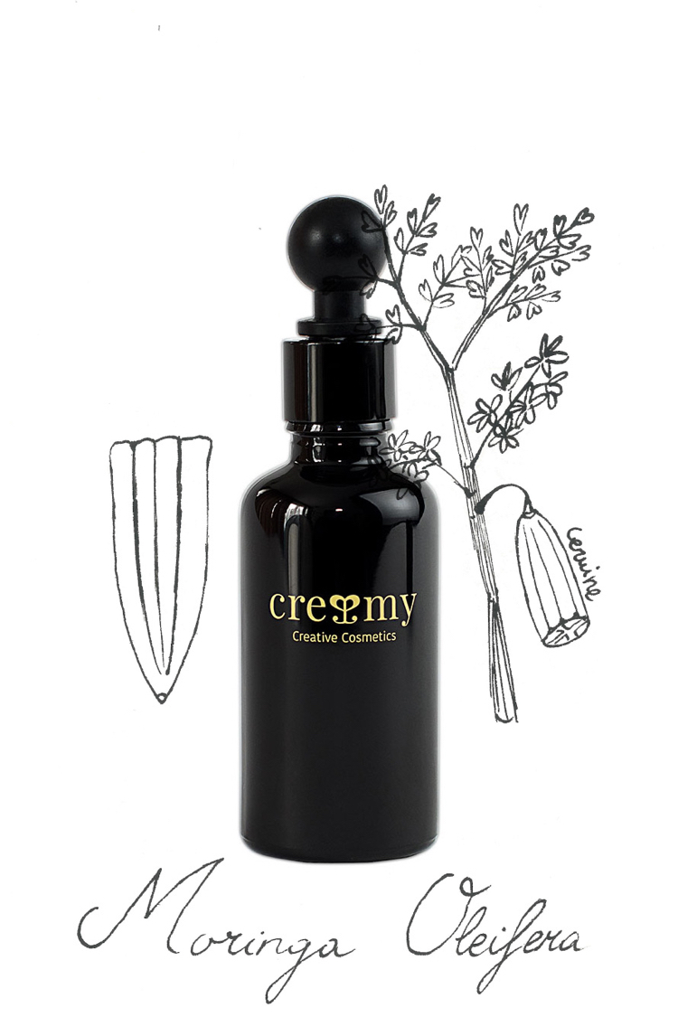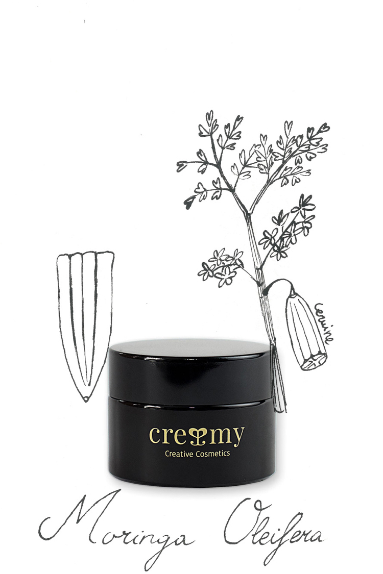 Drzewo moringi jest nazywane drzewem długowieczności. Na ten przydomek zapracowało swoimi cudownymi właściwościami, z których od lat czerpie medycyna naturalna, sztuka kulinarna i kosmetyka. W tym ostatnim przypadku wystarczy argument zawartości 46 antyoksydantów i 26 innych substancji hamujących procesy zapalne oraz ilość kwasów tłuszczowych omega ‑3 ‑6 i ‑9, jaka znajduje się w oleju pozyskiwanym z nasion tego drzewa. Zdolność do namierzania i neutralizowania wolnych rodników wystarczy uzupełnić o statystyki ilościowe witamin i minerałów – moringa ma 4 razy więcej Wit. A niż marchew, 7 razy więcej Wit. C niż pomarańcza, 17 razy więcej białka niż mleko, 25 razy więcej żelaza niż szpinak i 15 razy więcej potasu niż banany.