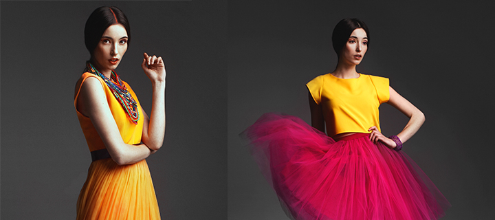 “Postanowiłyśmy stworzyć taką właśnie sesje aby rozświetlić i ożywić szary i ponury klimat zimy. Zatęskniłyśmy za intensywnymi kolorami wiosny. Zadałyśmy sobie pytanie, dlaczego nie przywołać ich zimą? W ten sposób powstał pomysł na nowy edytorial. Nasza stylistka Dobrochna, zgromadziła obfitą garderobę. Składała się ona z projektów, pochodzących z aktualnych kolekcji polskich projektantów. Aby na planie nie było nudno przygotowałyśmy również elementy scenografii. Wypożyczyłyśmy rower od OstreKoło.pl, który idealnie wpasował się kolorystycznie w zamysł naszego projektu. Dodatkowo wykorzystałyśmy stare pomalowane opony jako ciekawy element wypełniający kadr. Naszą sesje nazwałyśmy „Emocje tańczące z kolorami”. Modelki pozując doskonale współgrały z zamysłem sesji . Na ich twarzach maluje się ekspresja, a magnetyzm w ich wzroku hipnotyzuje. Widać, że zdjęcia były robione w ruchu i oto nam chodziło. Emocje modelek sprawiają wrażenie jakby tańczyły, a kolory dopełniały jedynie całość i opytymalizowowały efekt końcowy. ”