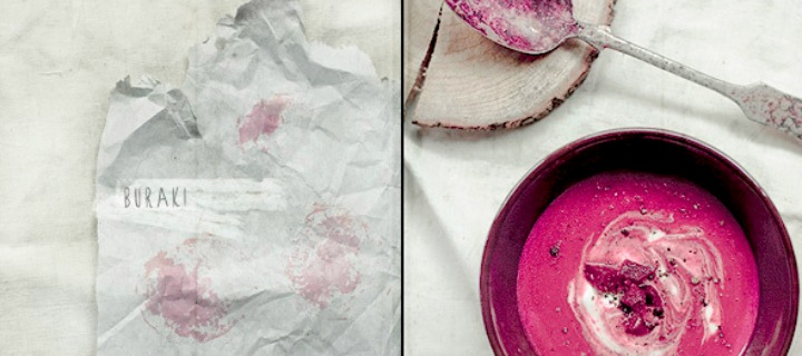 Buraki i ziemniaki obrałam i pokroiłam w kostkę. Wrzuciłam do gorącego bulionu i ugotowałam do miękkości ziemniaków i względnej miękkości buraków. Przyprawiłam, dodałam zahartowaną śmietanę i zblenowałam zupę na gładki krem.