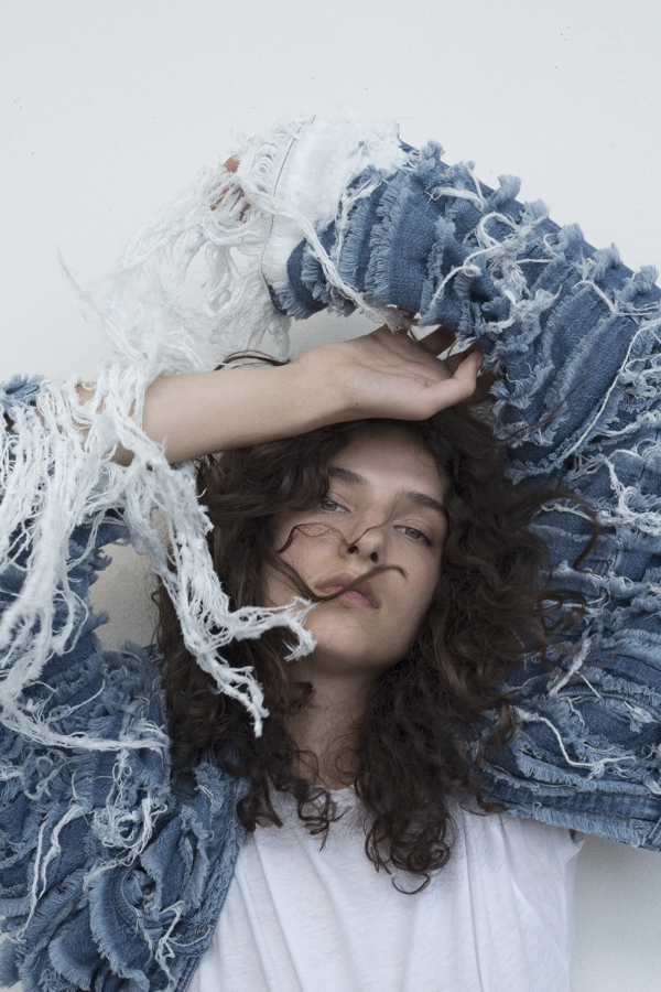 W damskiej kolekcji znajdziemy zreinterpretowane wersje kultowych modeli Levi’s® jak np.Trucker Dress, czyli Type III Jacket w wersji sukienki czy Blanket Tee Dress przerobiona na krótką sukienkę w paski bez rękawów. Biały komplet rozkloszowanych Union Trouser i kurtki Trucker z rzędami nitów po zewnętrznej stronie nogawek i otwartymi szwami na rękawach to absolutny hit! Najbardziej wyrazistym elementem kolekcji jest postrzępiona High Rise Skirt i kurtka Bolaro Trucker do kompletu. Cały strój wykonany jest z warstw postrzępionego i bielonego denimu z frędzlami, co daje wrażenie surrealistycznej faktury.