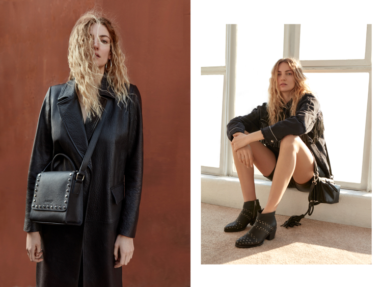 W kolekcji pojawiają się zupełnie nowe modele torebek – shoppery oversize, klasyczne kuferki z nitami, listonoszki na łańcuszku, czy modne w tym sezonie belt-bags w zwierzęcy print. Wśród butów jak zawsze mocne akcenty, które ożywią każdą, letnią stylizację – mocne kowbojki, rockowe botki, kobiece czółenka z odkrytą piętą, czy futrzane klapki. Wszystkie buty wykonane są we włoskich i hiszpańskich manufakturach i pojawią się w bardzo krótkich seriach. Torby powstają w Polsce z najlepszej jakości włoskich skór.