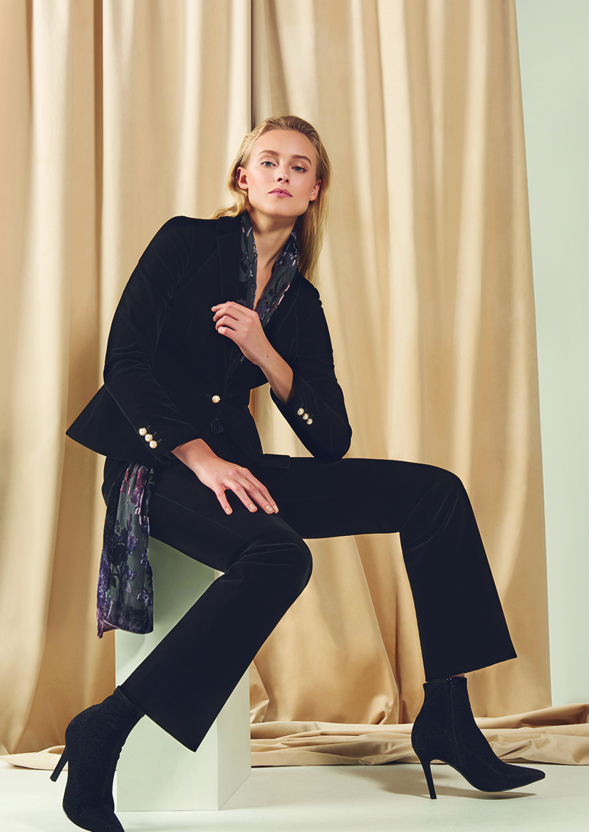 Dominujące kolory: czerń, pudrowy róż, śliwka.