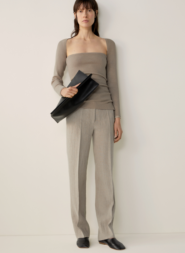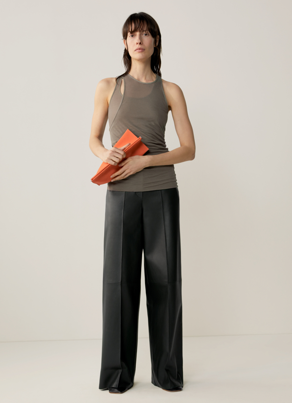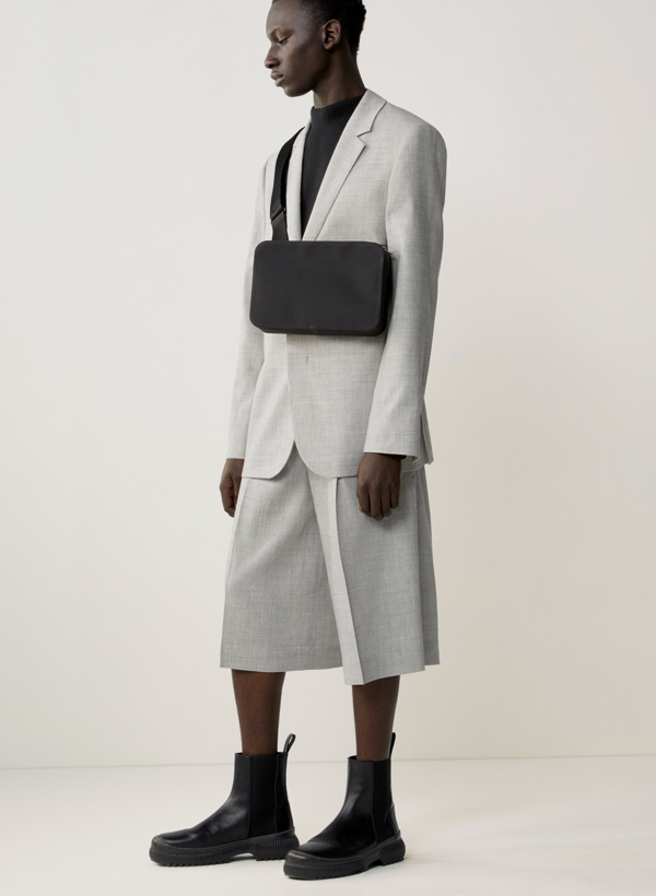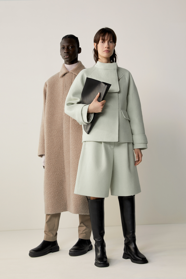 Od lat kolekcje męskie w COS to zabawa tradycyjną białą koszulą. Dzięki architekturze i perspektywie, nieustannie zmienia ona swoje oblicze, a w połączeniu z przejrzystym pomarańczowym topem z odzyskanego nylonu, nabiera zupełnie nowego wyrazu, tworząc nowoczesną modę na miarę XXI wieku. Wełniany, dopasowany płaszcz z przetworzonego nylonu uzupełniają niemal jedynie funkcjonalne kieszenie – a wszystko po to, by zapewnić jak największy komfort noszenia. Nie zabrakło także nieoczywistych projektów, takich jak chociażby liliowa, skórzana bluza czy płaszcz oversize z szorstkiej wełny, a dotychczas znienawidzone i staromodne sztruksy zyskały sznurkowy ściągacz, który dodaje im sportowego stylu.