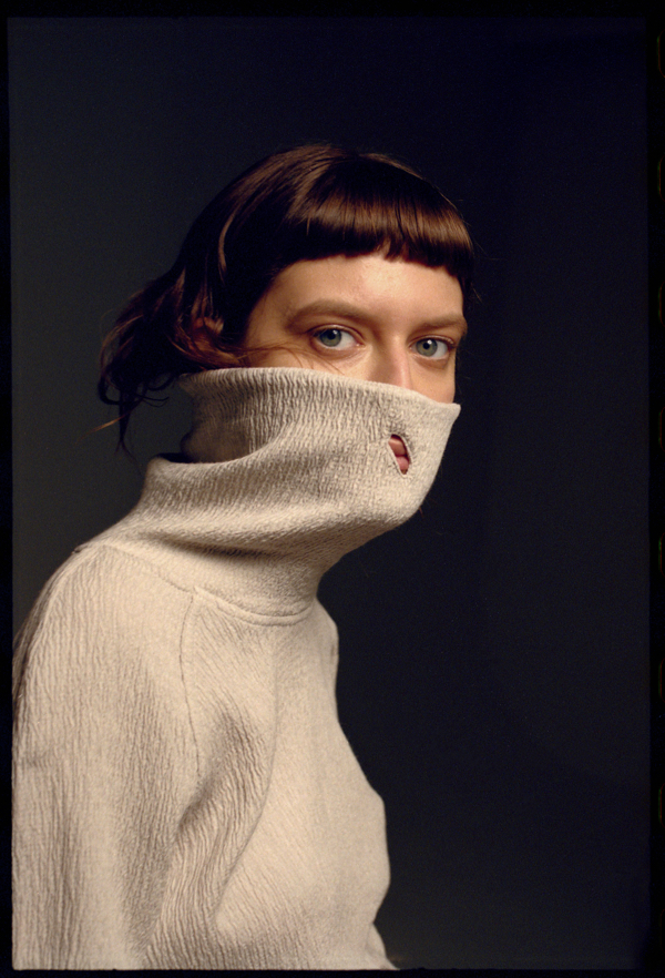 Beata Modrzyńska to projektantka mody, która szkoliła się w HEAD w Genewie. W ramach kolekcji dyplomowej Modrzyńska eksperymentowała z przekształcaniem konturów ciała w wektory i krzywizny, które stały się podstawą jej wizualnego języka. By przełożyć ten eksperyment na projektowanie odzieży, używała zarówno tradycyjnych cięć, jak i konstrukcji o amatorskim wyglądzie budujących dialektyczne napięcie. Przetwarzając to, co w ubraniu znajome, proponuje nowe spojrzenie na nasze relacje z rzeczami.