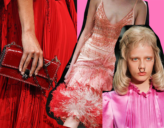 W tym roku wśród trendów bez wątpienia wiodącym będą dwa: róż oraz czerwień. Najlepiej, jeśli połączysz je ze sobą, choć z pewnością dotychczas słyszałaś, że tych kolorów nie powinnaś ze sobą łączyć. Ryzykowne? Nie do końca. Niech wzorem będzie dla Ciebie najnowsza kolekcja Miu miu i Valentino, która została ograna perfekcyjnie: czerwone, zwiewne spódnice, różowe okrycia wierzchnie i sukienki. Obowiązuje Cię biurowy dress code? Wybierz pudrowy total look: perfekcyjnie skrojony garnitur od Altazurra, albo wściekle różowy i seksowny Versace, w którym będziesz czuć się swobodnie, a przy tym wiarygodnie, wciąż pozostając kobieca. Jeśli uwielbiasz sukienki (a wiemy, że tak jest), projektanci proponują romantyczne, z falbanami i kwiatami (Magda Butrym, IRO), albo bardziej zachowawcze w postaci popelinowej koszuli Maison Margiela. Świetnie będą współgrać solo, w połączeniu z dżinsami; szczególnie z tymi z szerokimi i niedbale postrzępionymi nogawkami albo dwa w jednym- różu nigdy za wiele, ale zestawiając ze sobą dwie zupełnie różne części garderoby, np. spódnice, t‑shirty czy bomberki, staraj się łączyć ze sobą co najmniej dwa różne odcienie, jak na przykład pudrowe z fuksją. W ten sposób zachowasz równowagę i stworzysz ciekawy kontrast na wzór czerwonej, plisowanej spódnicy Gucci połączonej z pudrową bomberką Saint Laurent.
