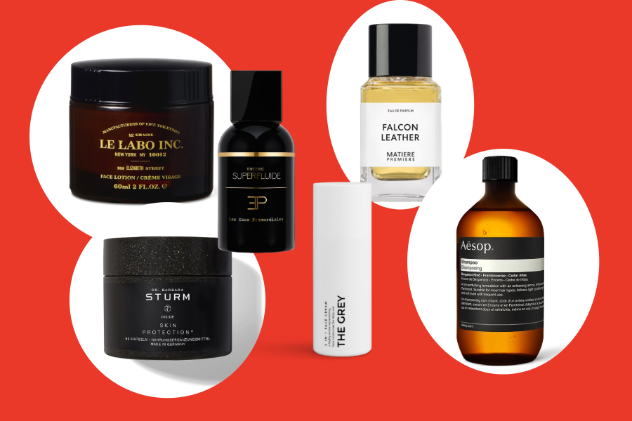 Prezenty na Walentynki dla niego – wyjątkowe propozycje z myślą o bliskości: Le Labo – Face Lotion, LES EAUX PRIMORDIALES – Encens Superfluide, MATIERE PREMIERE – Falcon Leather, Dr. Barbara Sturm – Skin Protection, suplementy diety, THE GREY – 3 in 1 Face Cream, Aēsop – Shampoo.