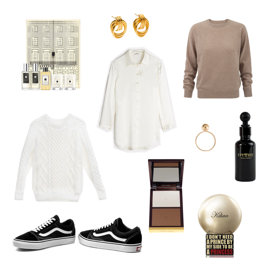 Pre­zen­ty pod cho­in­kę dla każ­dej dziew­czy­ny: Jo Malo­ne Lon­don zestaw, jagg. jewels kol­czy­ki, NAGO kasz­mi­ro­wy swe­ter, Inti­mis­si­mi jedwab­na koszu­la, Robo­ty Ręcz­ne swe­ter, Tom Ford bron­zer, Rosa Cha­ins pier­ścio­nek wyko­na­ny ręcz­nie, Cre­amy olej Maru­la, VANS buty, KILIAN Prin­cess Rose De Mai Woda per­fu­mo­wa­na.