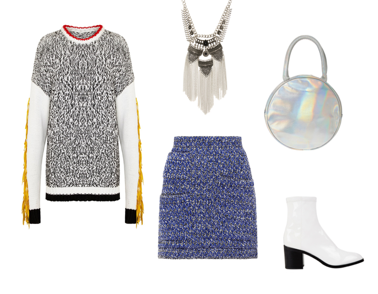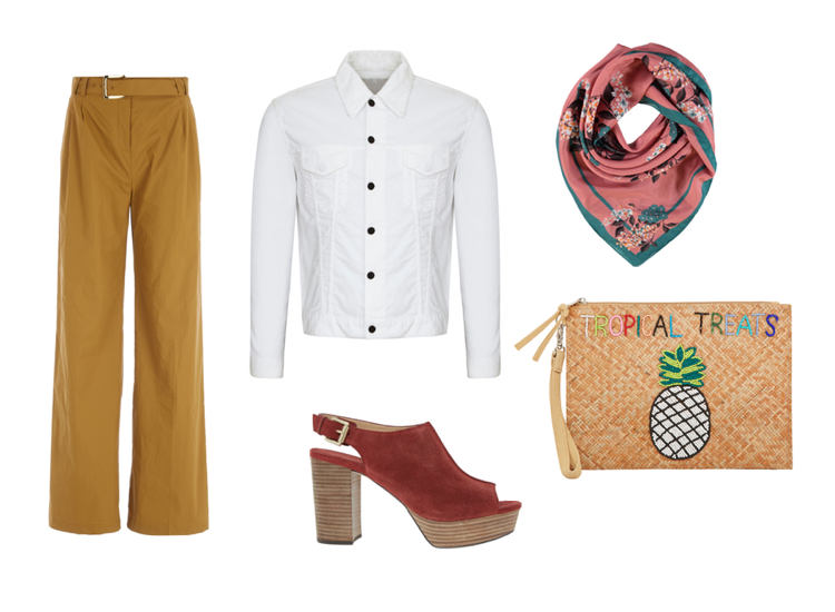 W oparciu o dostępne w TK Maxx ubrania redakcja Vers-24 stworzyła dwie niepowtarzalne i oryginalne stylizacje. Jedna z propozycji – minimalistyczna, w stylu boho to połączenie klasycznych, rozkloszowanych musztardowych spodni z wysokim stanem z modną w tym sezonie białą, denimową kurtką i przewiązywaną na szyi apaszką. Całość uzupełniają wygodne sandały na platformie w stylu lat 70, a klasyczną stylizację przełamuje zabawna kopertówka z ananasem wykonana z rafii. Druga stylizacja to połączenie faktur – tweedowej, krótkiej niebieskiej spódnicy i… biało-czarnego swetra z żółtymi frędzlami na rękawach w towarzystwie białych kozaków za kostkę, lśniącej, srebrnej, okrągłej torebki oraz dla wykończenia- długiego srebrnego łańcuszka. Wybór Vers-24 to najlepszy dowód na to, że w jednym sklepie można wyczarować magiczne i bez wątpienia unikatowe stylizacje.