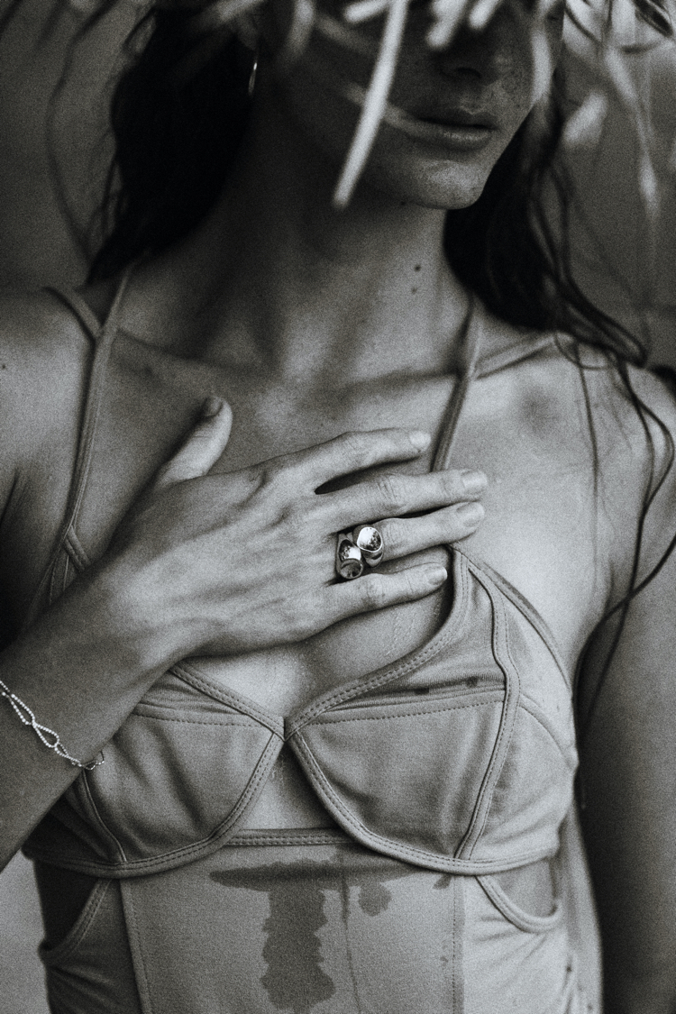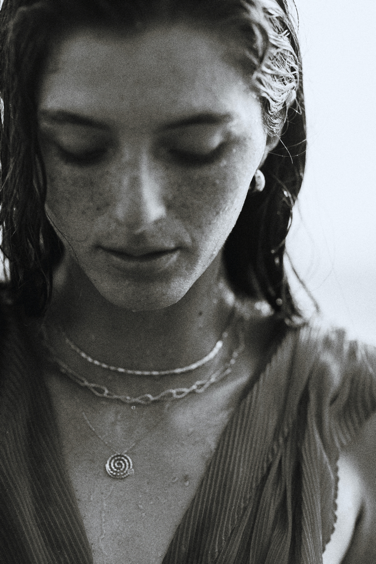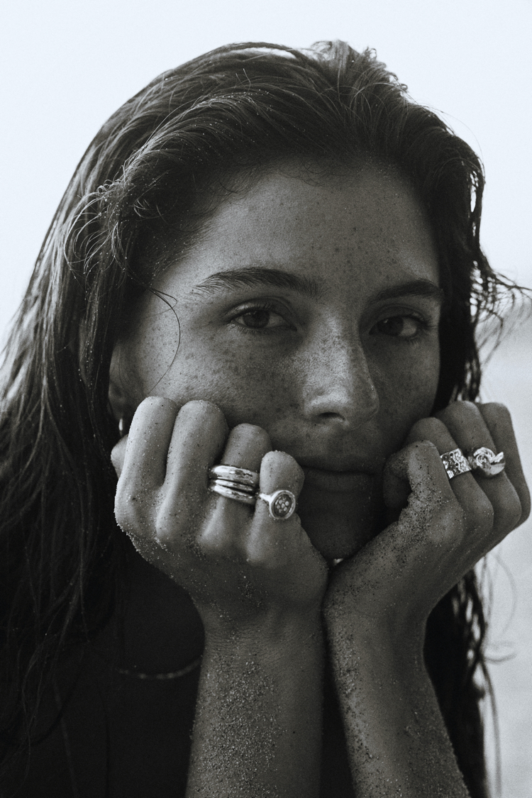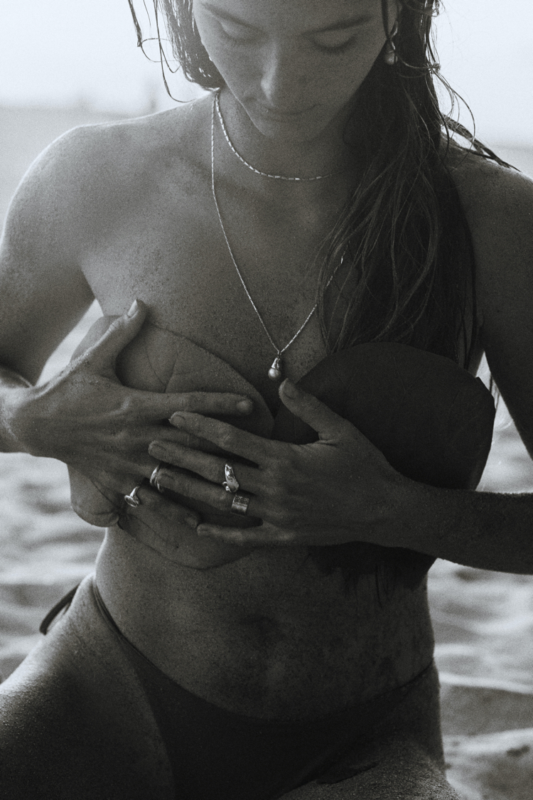 Piaszczysta plaża Puerto Escondido w słonecznym Meksyku, woda, czarno – białe, surowe kadry, a w roli głównej Ona – ekskluzywna, ręcznie wykonana biżuteria polskiej marki Rosa wspaniale uchwycona w obiektywie Soni Szóstak w kampanii na lato 2021.