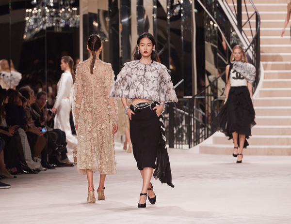 W kolekcji „31 Rue Cambon” znajdziemy zatem klasyczne czarne płaszcze z grubej wełny noszone jako sukienki i przewiązane szyfonowymi szarfami bogato haftowanymi złotem oraz klejnotami. Prócz eleganckiej czerni i bieli nie zabrakło intensywnych różów, burgundów i koralowców, które znalazły się na dzianinowych swetrach i szyfonowych ombré nadrukach. Ciemne, czarne szyfonowe i koronkowe suknie wieczorowe zostały skrócone do długości kostki – tak, aby nie ciągnęły się po beżowym dywanie i zapewniały swobodę. Tegoroczna kolekcja Métiers d’art to za to wyraziste detale - torebki w formie klatki dla ptaków czy hafty z błyszczących czarnych piór. To prawdziwe uosobienie współcześnie pożądanej, pragmatycznej i luksusowej kolekcji, stworzonej dla kobiet, które do ubrań podchodzą przede wszystkim praktycznie.