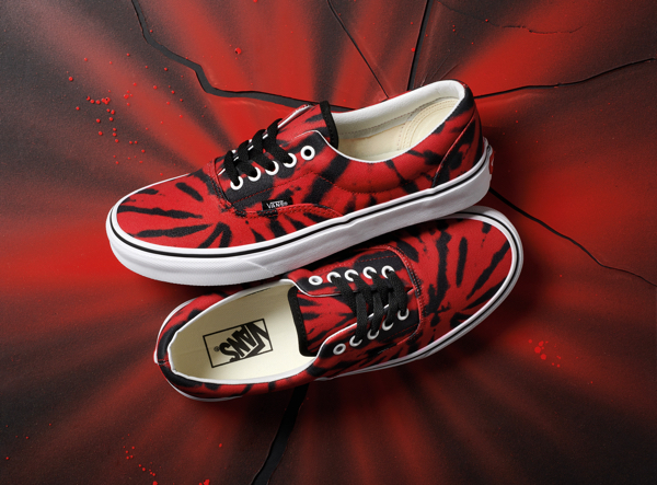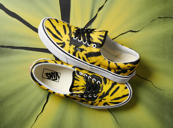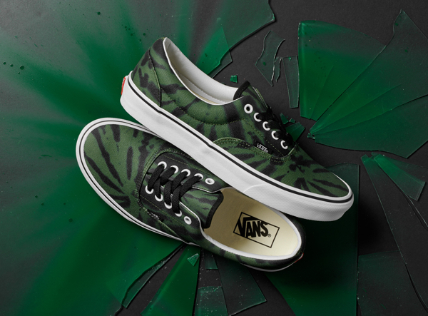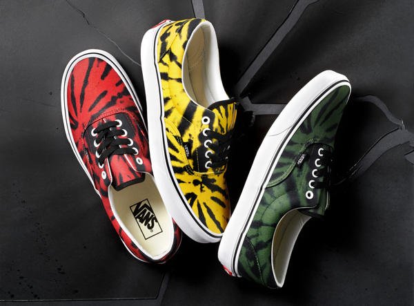 Kolekcja Vans Tie Dye prezentuje świeże spojrzenie na ten odważny trend, wprowadzając druki wykonane metodą cyfrową występujące w trzech wersjach kolorystycznych: czerwonej, żółtej i zielonej. Każdy element kultowych butów skateboardowych Vans został ozdobiony jaskrawym nadrukiem i wykończony wzdłuż języka czarną lamówką, posiada białe oczka i czarnymi sznurowadłami. Kolekcja Vans Tie Dye będzie dostępna w sklepach Vans i online w Vans.com/Classics w marcu tego roku.