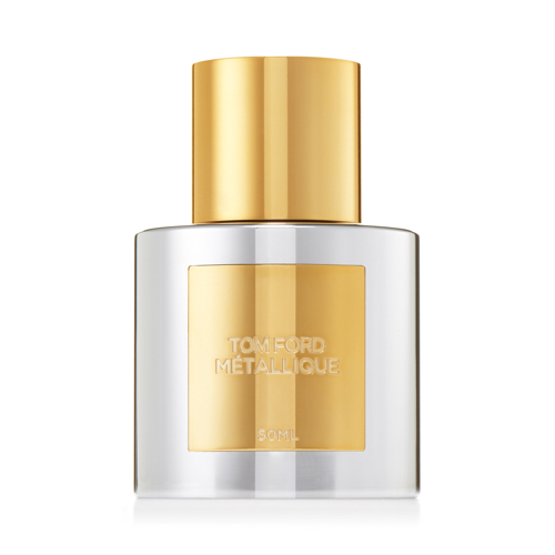 Flakon TOM FORD MÉTALLIQUE odzwierciedla promienne piękno tego zapachu. Ukryty w wykonanym z gładkiego, srebrnego szkła flakonie z utrzymaną w złotej kolorystyce tabliczką i pasującym do niej korkiem, zapach ten dostępny jest w dwóch pojemnościach: 50 (549 zł) i 100 ml (749 zł).